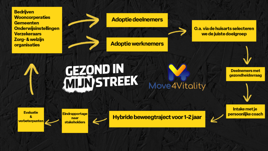 Stichting Gezond in Mijn Streek en Move4Vitality slaan de handen ineen en lanceren samen het digital health-platform ‘Roda4Vitality’. De app is een uitbreiding op het bestaande Move4Vitality-platform en richt zich op het bevorderen van een duurzame, actieve leefstijl bij deelnemers die hierbij extra begeleiding nodig hebben. Bedrijven kunnen via het platform een groep deelnemers ‘adopteren’ en zo niet alleen maatschappelijk impact maken, maar ook bijdragen aan een vitalere en gezondere regio.